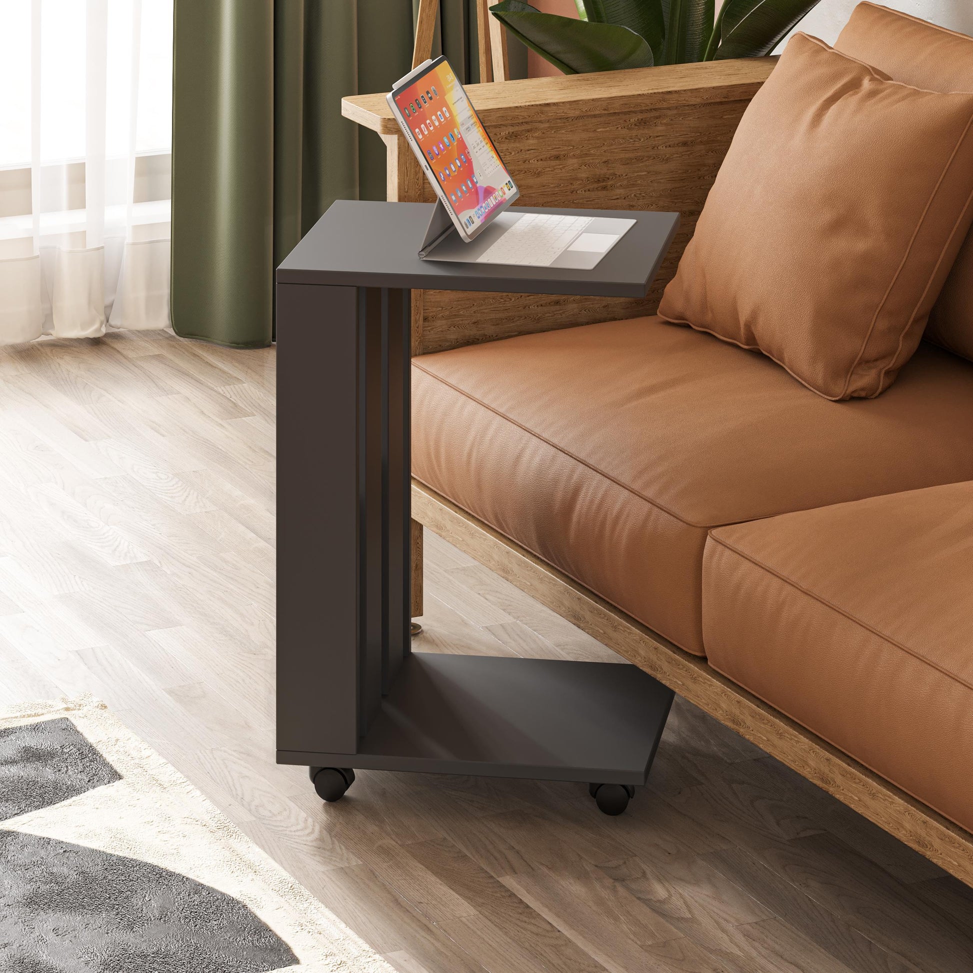 Edi Modern C-kujuline Abilaud Ratastega – Mitmeotstarbeline Diivanilaud, 60 cm Kõrgus