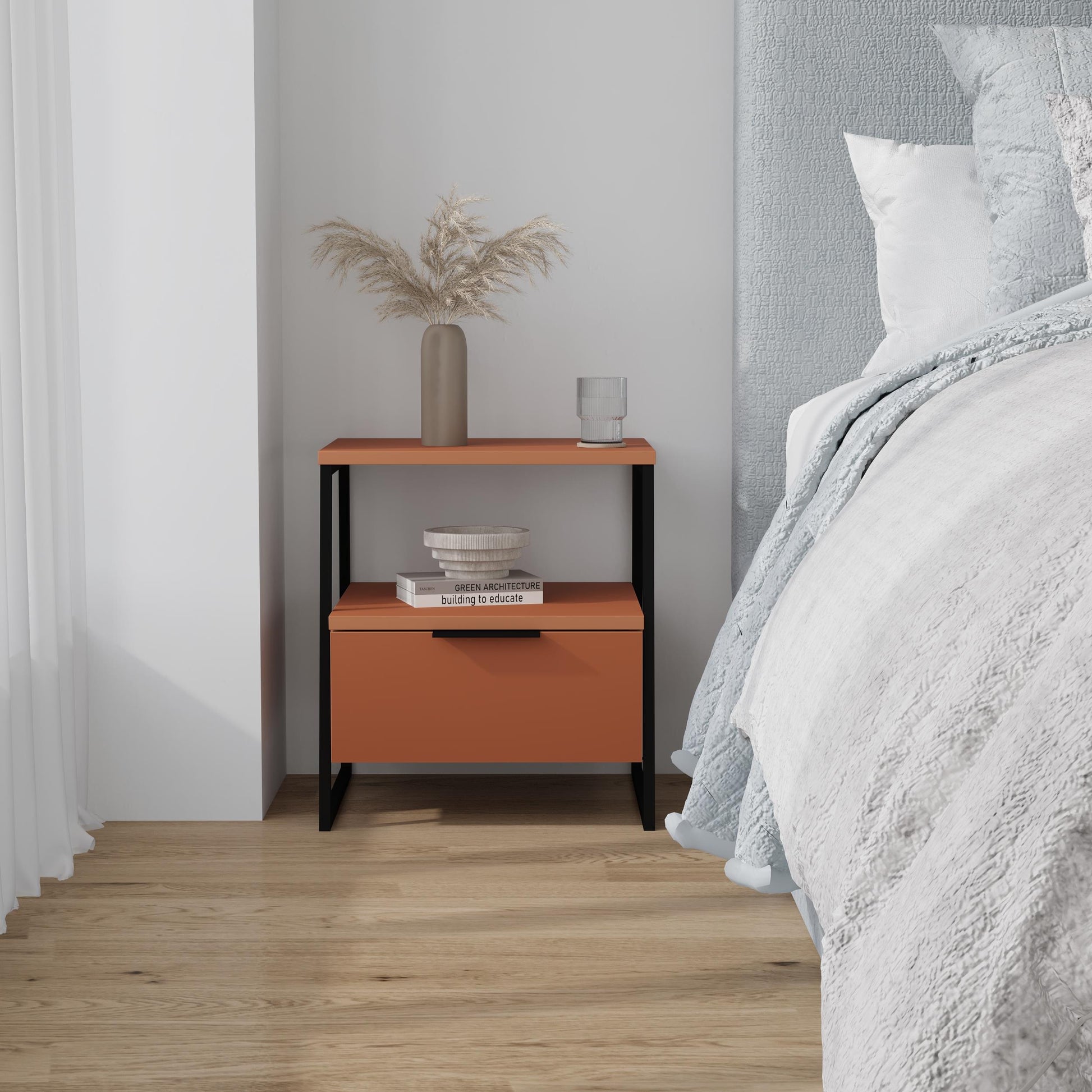 Pal öökapp ühendab endas funktsionaalsuse ja stiili, pakkudes täiuslikku lahendust teie magamistoale. Mõõtmetega 45 x 41 x 50 cm sobib see ideaalselt voodi kõrvale, pakkudes praktilist hoiustamisvõimalust avatud riiuli ja mahuka sahtliga. Tänu tugevatele metalljalgadele ja kaasaegsele disainile täiendab see öökapp iga sisekujundust. Kasutage seda öökapina, abilauana, kohvilauana või isegi taimealusena – valik on teie! Saadaval mitmes värvitoonis, et sobitada oma olemasoleva mööbliga.