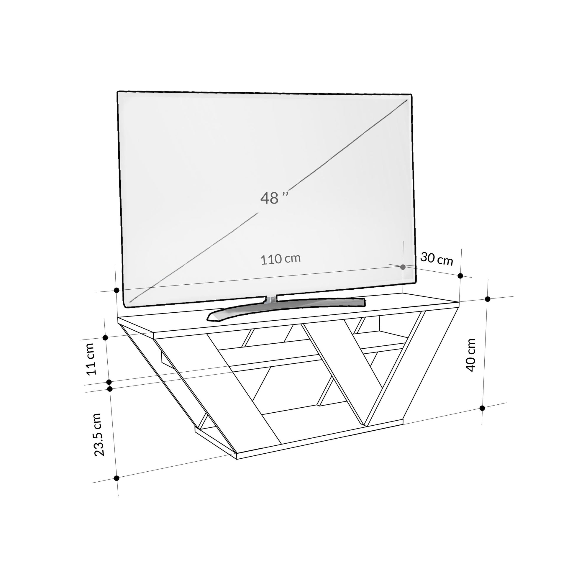 Pipralla modernne TV-alus on ideaalne lahendus väiksematesse eluruumidesse. Laiusega 110 cm mahutab see kompaktne TV-alus kuni 43-tollised telerid, pakkudes samas praktilist hoiuruumi kahe avatud riiuliga. Minimalistlik disain koos V-kujuliste jalgadega lisab stiilse ja kaasaegse ilme igasse interjööri. Valmistatud vastupidavast puitlaastplaadist ning kaetud kaitsva melamiinkattega, mis tagab pikaajalise kasutuse ja lihtsa hoolduse. Saadaval mitmes eri värvitoonis, et sobituda teie kodu stiiliga.