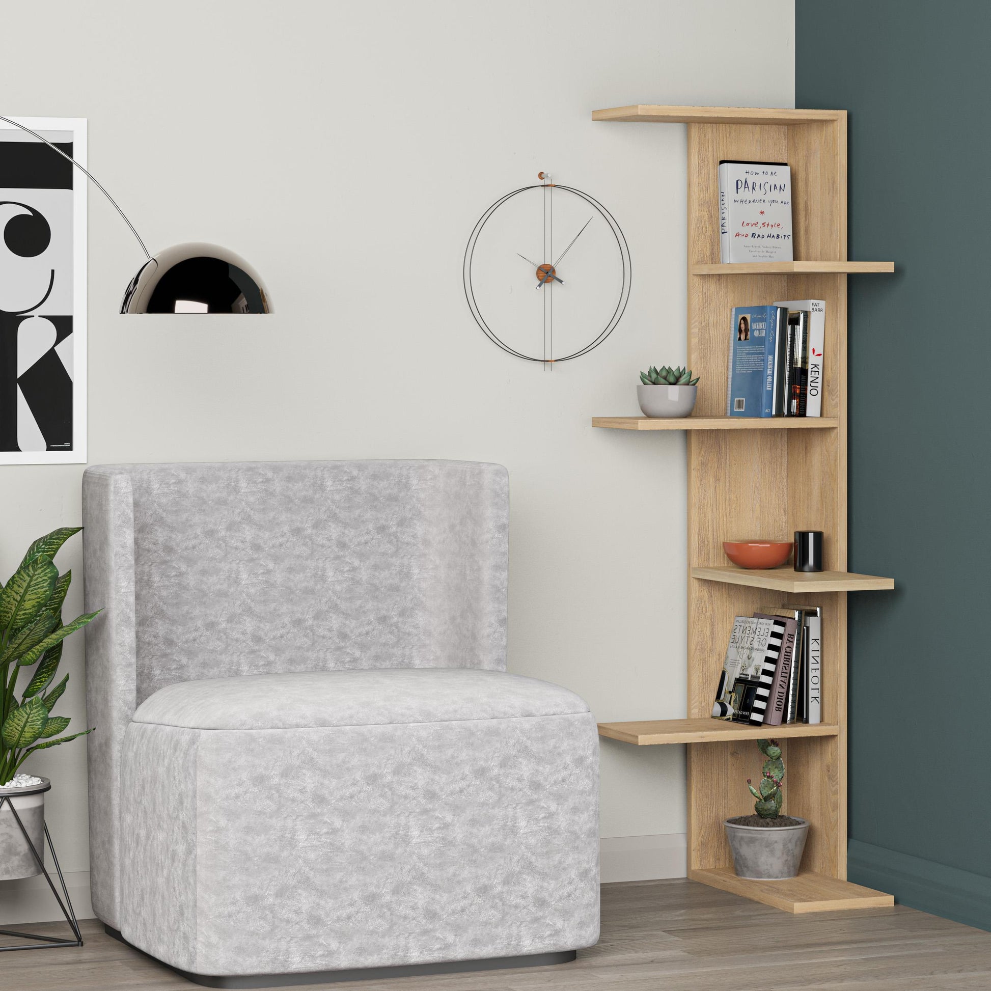 Muuda kasutamata nurk funktsionaalseks ja stiilseks alaks Saso nurgariiuliga. Sellel 5-tasandilisel raamaturiiulil on kompaktne, ent mahukas disain (37 x 37 x 141 cm), mis sobib ideaalselt raamatute, taimede ja dekoratiivesemete hoiustamiseks.