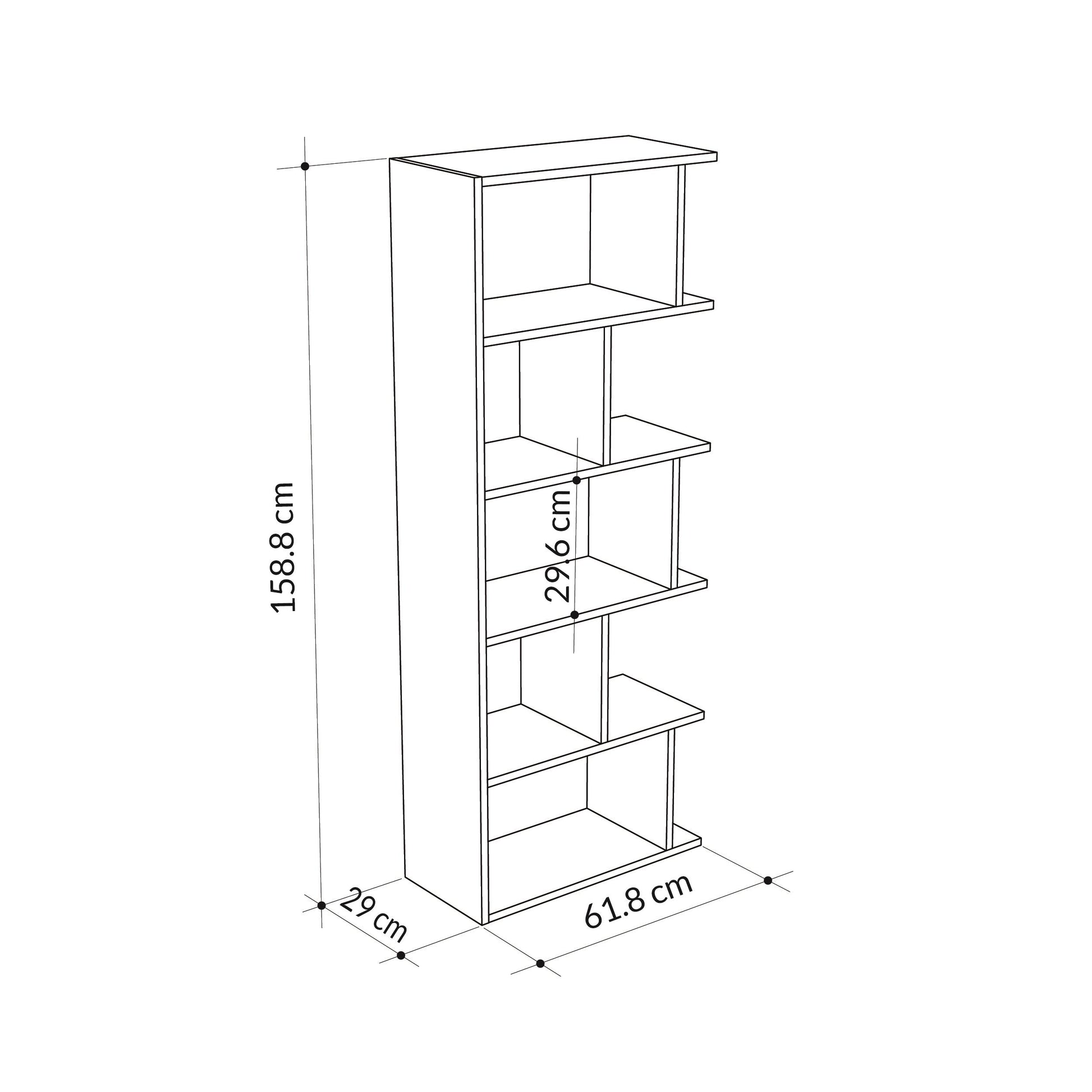 Tapi raamaturiiul ühendab endas stiili ja praktilisuse, pakkudes rohkelt hoiuruumi ja pilkupüüdvat disaini. Selle 159 cm kõrgune konstruktsioon koos viie avatud riiuliga sobib suurepäraselt raamatute, fotode, dekoratiivesemete või kollektsioonide eksponeerimiseks. Tänu kompaktsele suurusele (62 x 29 x 159 cm) sobib see riiul nii elutuppa, kodukontorisse kui ka magamistuppa. Valmistatud kvaliteetsest mööbliplaadist ja viimistletud vastupidava melamiinkattega, mis tagab pikaajalise kasutuse ja lihtsa hoolduse. Saadaval mitmes värvitoonis, et sobituda erinevate sisekujundustega.