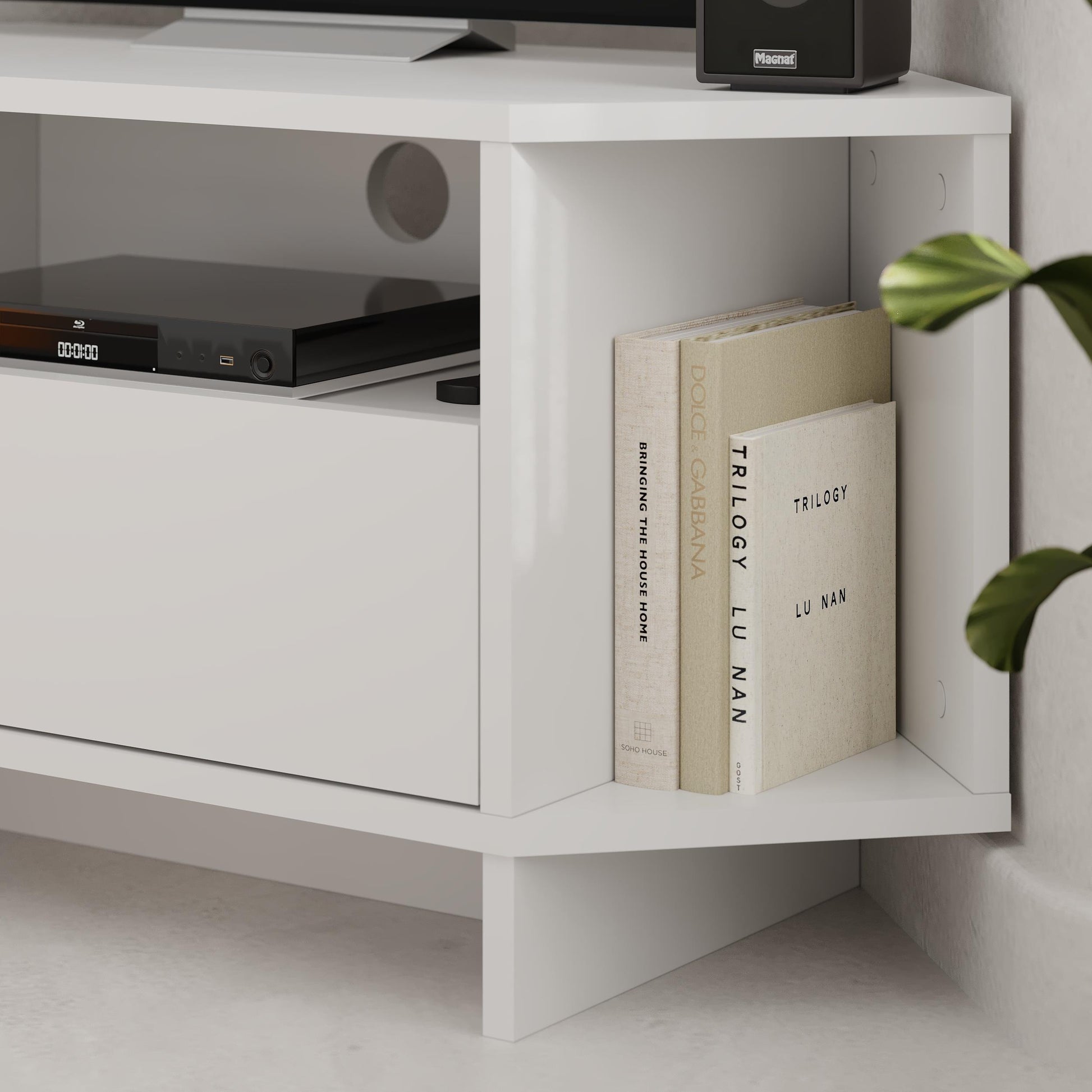 Viva nurgaga sobiv telerialus – 95,7 cm, kuni 40-tollistele televiisoritele, lükandukse ja 3 avatud riiuliga